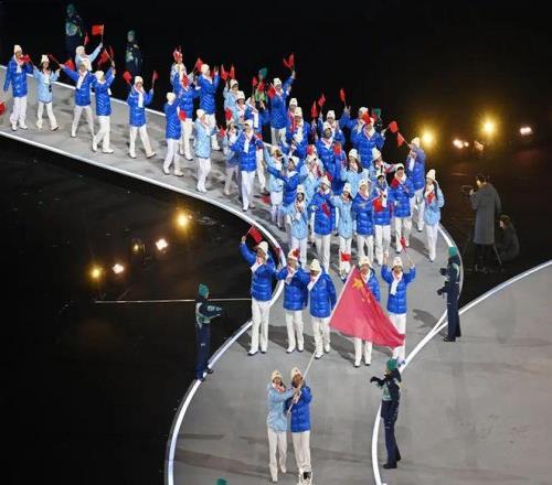 中國體育代表團共286人,其中運動員126人,將參加7個大項、15個分項、91個小項的角逐,創下中國冬奧會境外參賽項目最多、運動員規模最大的新紀錄。開幕式上,速度滑冰運動員寧忠岩和短道速滑運動員張楚桐共同擔任中國代表團旗手,引領隊伍入場。