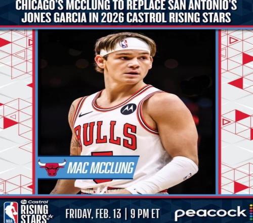 北京時間2月8日,NBA官方宣布,芝加哥公牛後衛麥克朗將頂替賽季報銷的馬刺後衛加西亞,參加2026年NBA全明星新秀賽。隻是麥克朗此前宣布不參加今年的全明星扣籃大賽,無緣衝擊扣籃大賽4連冠極為遺憾。