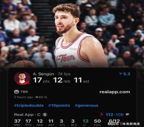 本賽季這小夥子簡直開掛:44場比賽場均出戰34分鍾,狂砍20.8分9.4籃板6.3助攻1.4搶斷1蓋帽的"五邊形數據",投籃命中率49.6%!得分生涯第二高,助攻直接創生涯新高——要知道這哥們才23歲啊!這進化速度簡直比火箭升空還快!