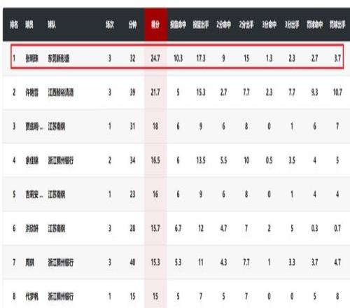 在俱樂部杯的A組,張明珠以場均得到24.7分排名得分榜第一。年僅20歲的張明珠成為今年WCBA俱樂部杯小組賽表現最閃耀的內線球員。