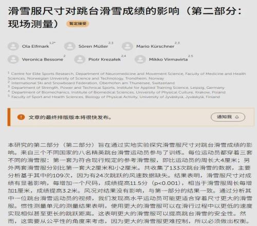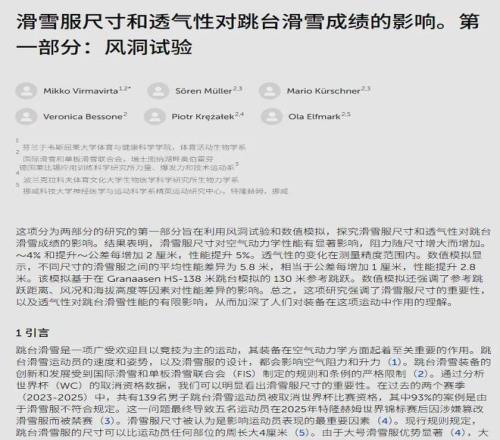 權威期刊《前沿》在2025年10月30日發表了一項研究:滑雪服公差每增加1厘米,在空中產生的升力,就足以讓成績提升2.8米,那麽不同型號的滑雪服之間,平均飛行距離差異可以達到5.8米。