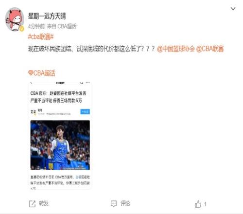 不少的球迷都在評論區表示這個處罰太輕了,輕拿輕放,多國家隊的比賽絲毫沒有影響,實際上該處罰他不能出戰中國男籃的比賽才對。