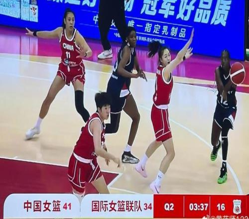 國際聯隊次節比賽連續追分,陳明伶籃下打成2+1後,對方空切得手後連續中投命中,接著又突破得手,打出一波8-0的小高潮縮小分差。楊舒予空切打成2+1止血,羅欣棫兩罰全中,楊舒予突破得分,中國女籃打出一波7-3擴大優勢以39-25領先。對方籃下得分後突破打成2+1,接著又突破得分,打出一波7-0的小高潮縮小分差。陳明伶和羅欣棫連續兩罰全中,中國女籃再次將優勢擴大到兩位數以44-34領先。對方中投連中四球,張子宇籃下連續吃餅得分,張曼曼兩罰全中,陳玉婕空切得手,半場比賽結束,中國女籃以54-43領先。