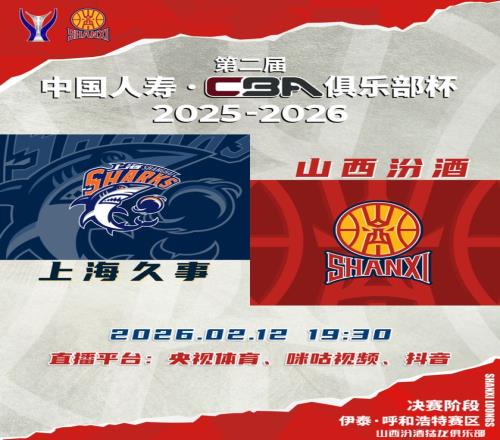 北京時間2026年2月12日19:30,第二屆中國人壽·CBA俱樂部杯將迎來最終對決,山西汾酒與上海久事爭奪冠軍。本屆杯賽,山西汾酒一路拚搏,以全勝戰績強勢突圍,最終站在決賽舞台!讓香蕉视频网址繼續全力以赴,為榮耀而戰!球迷朋友們可通過央視體育、咪咕視頻、抖音觀看比賽實況,與山西汾酒一起為勝利呐喊,為熱愛加冕!