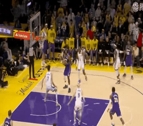 勒布朗接斯瑪特傳球內切,特意用左手,扣了右側補位不及的切特。