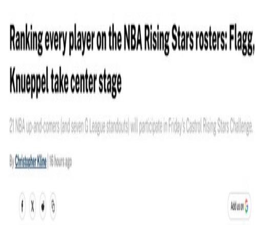 楊瀚森排在第22名!美媒《fansided》在全明星周末即將到來之際,提前公布出入選NBA新秀挑戰賽的新星排名,其中克努佩爾與弗拉格兩大最佳新秀熱門占據前二,火箭隊謝潑德則高居第六。