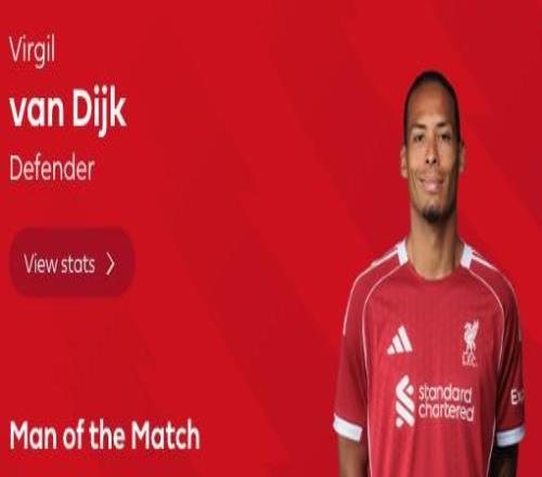 最終經過英超官網球迷投票,範戴克以68%的得票率當選全場最佳球員。