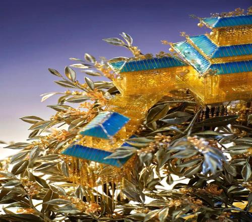 用到了中國傳統的琉璃燒製、花絲鑲嵌等等技藝製 作,一共1573顆寶石,40顆琉璃寶珠。