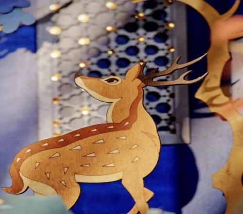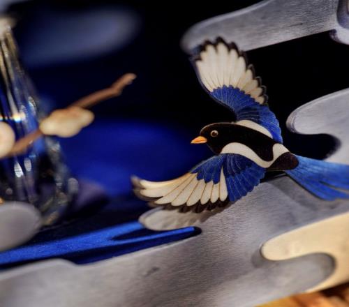 毫無疑問,今年這件作品主打的非遺技藝就是“細木鑲嵌”,打開以後就能看到內裏別有洞天的畫麵