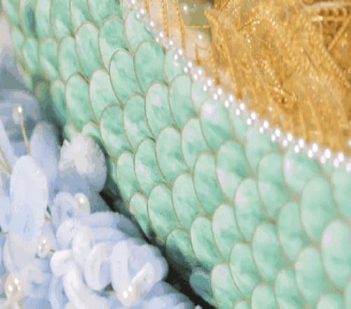 國窖1573那件聯名作品,就是利用絨花技藝製作出了一艘龍舟,據說由11個人的團隊花了兩個月才製作完成。