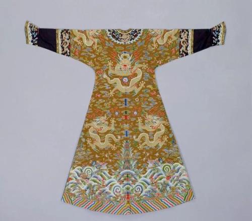 △中國目前大部分緙 絲作品都存在故宮博物院裏,圖為故宮博物院收藏的香色緙絲金龍夾龍袍