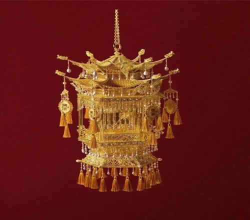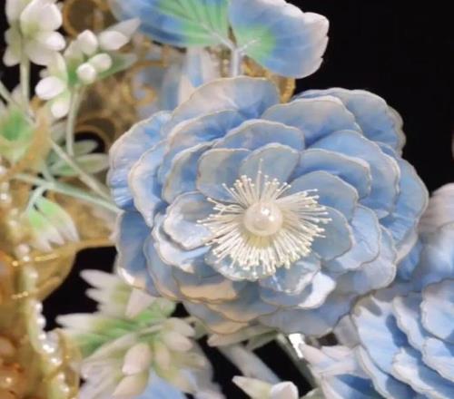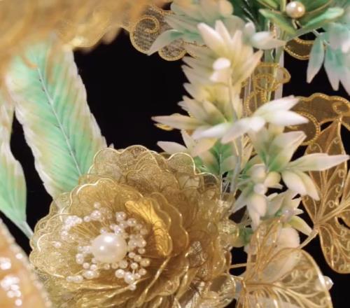 指的是把金、銀等貴金屬“拉”成細到頭發級別的絲,再用各種獨門手法,把金屬絲做成紋樣與立體結構,結合寶石珍珠鑲嵌完成作品。
