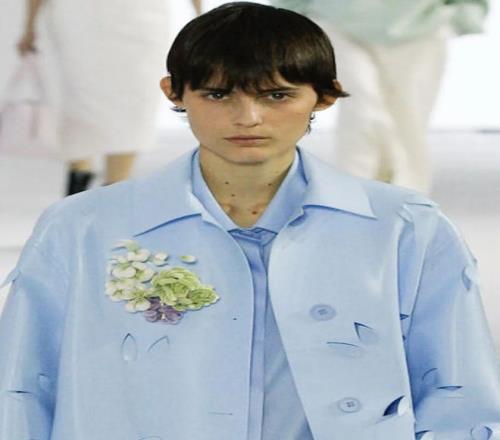 △Dior 2024春夏男裝,模特戴的帽子上別著的就是絨花