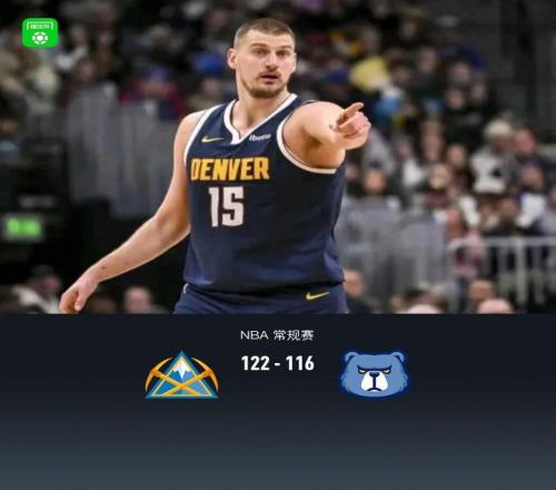 第四節掘金約基奇拿下7分,灰熊傑洛姆拿下5分,最終掘金122-116戰勝灰熊