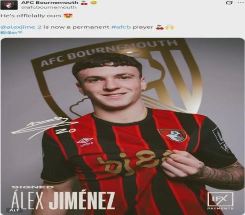 官方:伯恩茅斯宣布從米蘭買斷了亞曆克斯-希門尼斯。