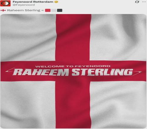 官方:費耶諾德宣布免簽斯特林,雙方簽署了一份本賽季結束後到期的合同。