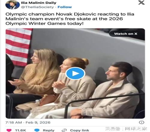 離開巡回賽之餘,德約科維奇近日還現身冬奧會賽場。這位巴黎奧運會冠軍與妻子耶蓮娜一同觀看了花樣滑冰團體賽。