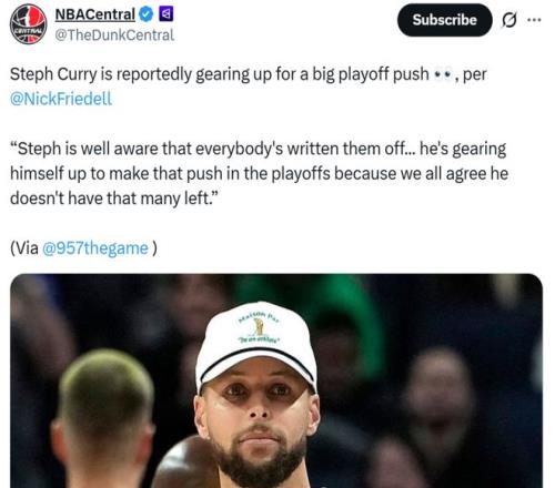 勇士記者Nick Friedell也在灣區電台節目中公開表示:“庫裏深知大家都已經將他們排除在外,但他正在全力以赴,準備在季後賽中奮力一搏,因為所有人都知道留給他的機會不多了。”