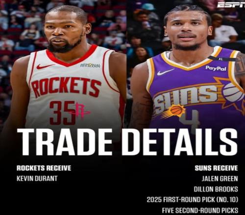 去年休賽期火箭隊用傑倫-格林、狄龍、2025年10號簽、5個次輪簽從太陽換來了凱文-杜蘭特,CBS、TA、ESPN多個權威媒體都給出了A-或A的交易評級,可隨著賽季的深入這種風評呈現了相反的態勢。