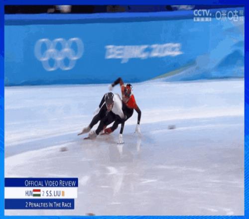 上麵這段視頻,出自2022年北京冬奧會短道速滑男子1000米決賽。當時代表匈牙利出場的劉少林(白色上衣)首先抵達終點,但主裁判回看錄像後,對他出示黃牌,並取消了成績。第二個衝線的中國選手任子威收獲了金牌。