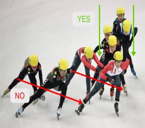 至於“變道”,這在直道是被允許的,但前提是足夠領先,具體標準是變道運動員的臀部必須位於另一運動員肩膀的前方。如果領先沒有這麽多,而是在並行時強行把別人擠走,就可能受到判罰。
