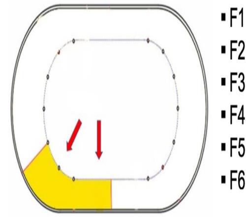 終點區(finish),從最後一個彎道出口開始到終點線,在終點區發生的犯規代碼為F1-F6 | 參考文獻[1]