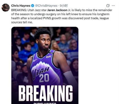 而更離譜的還在後續,此前爵士官方突然宣布,小賈倫接受手術,本賽季報銷;甚至還額外補充了一句,早在交易體檢時,爵士就知道他有傷在身了。