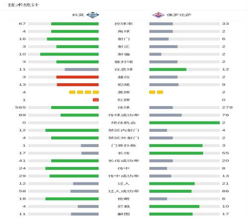 第54分鍾,曼德拉戈拉禁區內被踢倒,小基恩主罰點球命中,佛羅倫薩2-0領先
