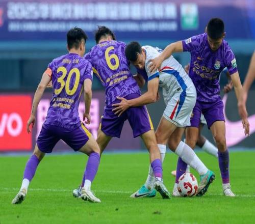 新華社照片,天津,2025年11月22日 11月22日,上海申花隊球員高天意(右二)受到天津津門虎隊多名球員防守。 當日,在天津舉行的2025賽季中國足球超級聯賽第30輪比賽中,上海申花隊客場3比1戰勝天津津門虎隊。 新華社記者 孫凡越 攝