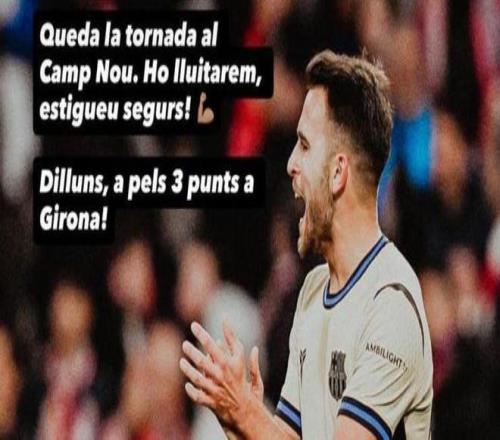 埃裏克-加西亞配上了一張自己在比賽中鼓掌的照片,呼籲球隊在諾坎普次回合賽事中拿出回應表現,同時也將目光對準了接下來對陣赫羅納的聯賽賽事。