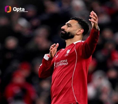 英格蘭足總杯第4輪,利物浦主場3-0戰勝布萊頓,薩拉赫本場比賽貢獻1粒進球和送出1次助攻。