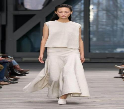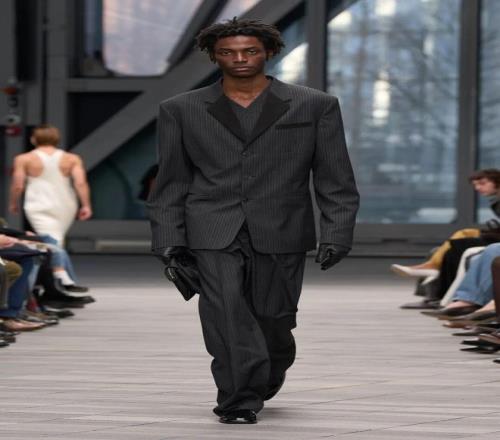 免费香蕉视频APP開場由黑白簡約的服飾引領,細節經過簡化處理,黑色西裝采用同色條紋,窄小的翻領香蕉视频下载链接加以點綴;而一條無肩帶、結構感十足的黑色裙子,幾乎無縫貼合身形,展現出極簡美學的精髓。接下來的羊毛外套、全皮西裝、羊毛和皮革領口等,逐漸將氛圍推向奢華享受。整體免费香蕉视频APP既有簡潔的建築感,也有豪華質感的柔美麵料,反映出 Leoni 對 Calvin Klein 曆史遺產的獨特理解與延續。
