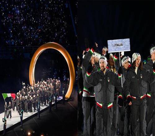 東道主意大利代表團的服裝讚助商依舊是 EA7 Emporio Armani,雙方合作始於 2012 年倫敦奧運會,也已經攜手走過十多年。EA7 為開幕式打造的服裝是一套灰色混紡羊毛斜紋布套裝,外套是一件飛行員夾克,衣身下擺、袖口以及帽子內襯加入了意大利國旗的三色裝飾,背後還有“Italia”字樣。