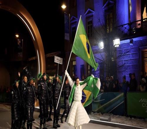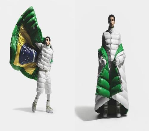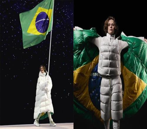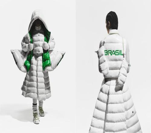 其他運動員的開幕式服裝則是從巴西國旗中提取了藍色和綠色,羽絨服加羽絨短褲或短裙,搭配帽子和 Altive 靴子。整體融合了巴西文化身份,也著重突顯了 Moncler 的山地基因。