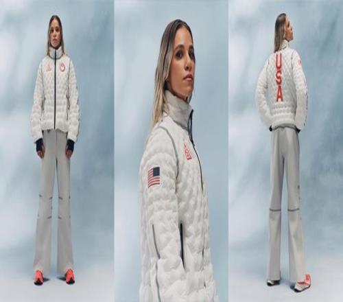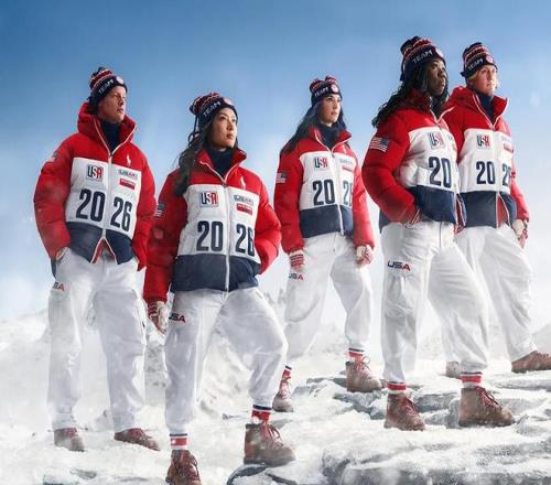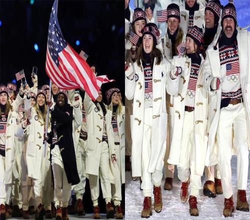 美國代表團這邊開閉幕式服裝由合作近 20 年的 Ralph Lauren 打造,延續品牌過去奧運會的玩法,開幕式服裝偏正式一些,閉幕式服裝則更體現運動感。前者以白色羊角扣大衣搭配高領毛衣和羊毛長褲,針織帽子、手套都采用了毛衣同款花紋裝飾,鞋子則是搭配了一雙配有紅色鞋帶的棕色麂皮登山靴,整體非常美式。