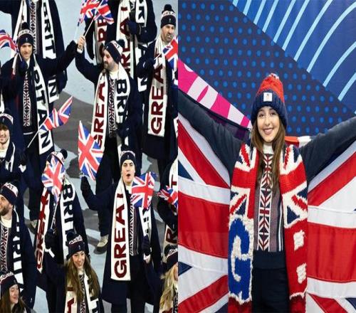 英國代表團這邊也是老麵孔,開幕式服裝由 Ben Sherman 操刀,主打滑雪休閑風,外套是深色的犬牙紋羊毛長大衣,搭配融入米字旗圖案的高領毛衣和慢跑褲,針織圍巾和帽子飾有“GREAT BRITAIN”字樣,整套造型很有協調性,也足夠體現代表團特色。