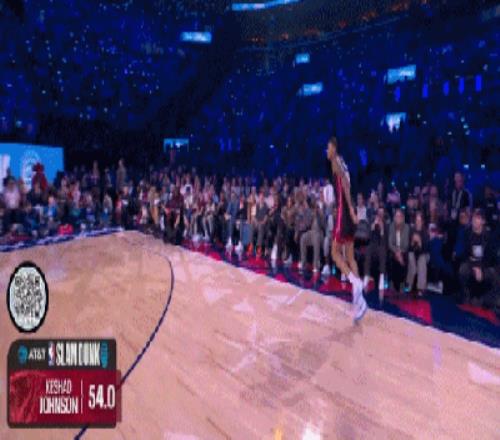 我以為 約翰遜要扣一個驚天動地的,結果他竟然致敬海斯,扣了個拉在地上的,47.8分,47分都是給他的舞蹈的。
