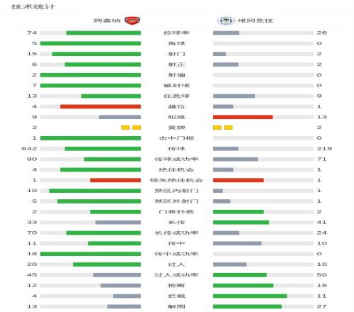 第19分鍾,埃澤直塞再送助攻,馬丁內利突入禁區破門,阿森納2-0維岡競技
