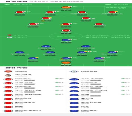 薩卡頂替受傷的卡拉菲奧裏首發,轉播陣型顯示位置為左後衛