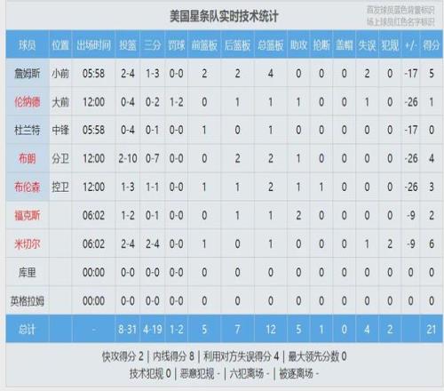 條紋隊和星辰隊會師決賽,條紋隊老將的體力下降,前10次出手全部打鐵。星辰隊開局打出12-1領先到兩位數。詹姆斯連得5分,愛德華茲連砍8分回應。打了半節,星辰隊領先到17分。條紋隊派上五小陣容,依然無法迫近分差。