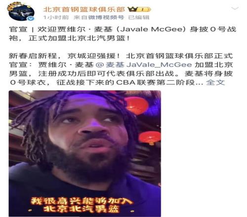 這位擁有NBA冠軍基因的內線,已經迫不及待,麥基難掩興奮,他表示很榮幸加入北京北汽男籃,期待與隊友並肩作戰,用激情與實力回饋京城球迷,還特意通過視頻的方式為大家送上新春祝福!