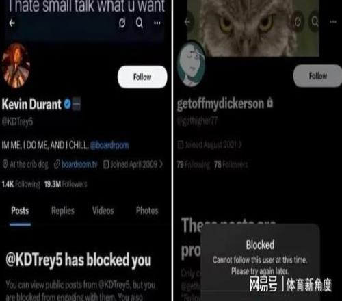 爆料網友堅稱該賬號屬於杜蘭特的關鍵證據在於:杜蘭特的大號曾將他拉黑,而這個神秘小號也莫名其妙地對他進行了拉黑操作,這種”讓他堅信這就是杜蘭特的小號。此外,該賬號的背景牆圖片,竟是杜蘭特此前在大號上發布過的,這進一步加深了他的懷疑。