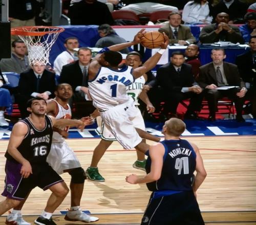 第三位,特雷西·麥克格雷迪。麥迪的巔峰期確實短,滿打滿算也就魔術那4年,可就是這短短幾年,他讓全世界見識到了什麽是天賦怪的進攻。他是NBA曆史上唯一一個,在後衛和小前鋒兩個位置都入選過最佳一陣的球員,1號位到3號位隨便切換,靜態天賦、動態天賦全是頂級。