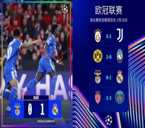 至此,2月18日的4場本賽季歐冠淘汰賽附加賽首回合較量戰罷:加拉塔薩雷5-2尤文圖斯、多特蒙德2-0亞特蘭大、本菲卡0-1皇家馬德裏、摩納哥2-3巴黎聖日耳曼。