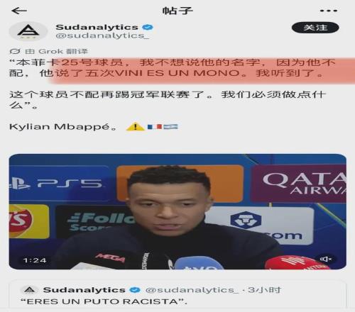 正方: 姆巴佩賽後麵對鏡頭擲地有聲:“我親耳聽到了,對方25號球員先後叫了維尼修斯5次‘猴子’。”這不僅是隊友的聲援,更是將歧視坐實的致命一擊。維尼修斯在替補席上的憤怒與無奈,看台上飛來的電子煙和雜物,似乎都在佐證這並非空穴來風。