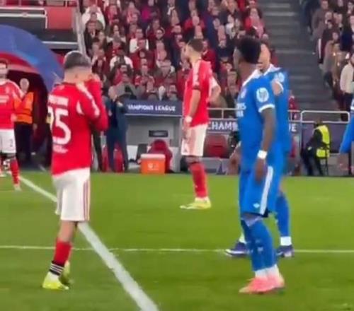 本菲卡官方在社交媒體上發布了如下視頻,展示了維尼修斯疑似遭遇種族歧視的過程,並寫道:“正如視頻所示,考慮到球員間的距離,皇馬球員不可能聽到他們認為自己聽到的內容。”