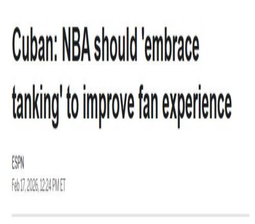 北京時間2月18日,馬克-庫班公開支持NBA擺爛。這位前獨行俠老板表示,NBA應該“擁抱擺爛”,首要原因就是球迷觀賽體驗。