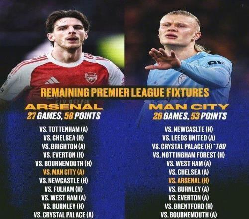 至於身後緊緊追趕的曼城,藍月亮軍團未來兩輪的對手是紐卡斯爾和利茲聯,賽程難度明顯低於阿森納的熱刺和切爾西連戰。而從曆史數據來看,曼城近三個賽季最後12輪場均得分(30+分)顯著高於阿森納。換一句話說,如果瓜迪奧拉的球隊在剩餘12輪英超全勝,則不用看任何人臉色也能奪冠。