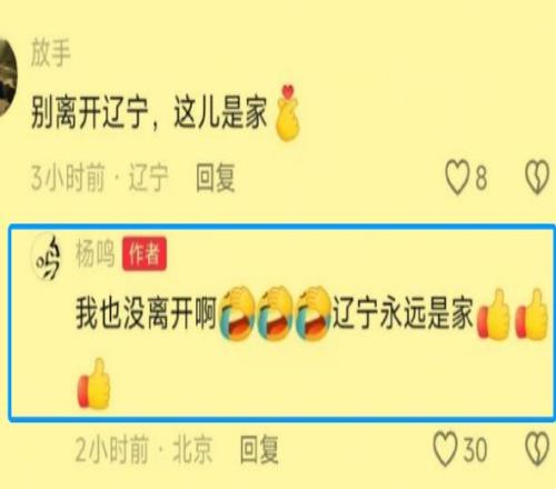 但是楊鳴在和球迷互動時承諾,雖然暫時離開了遼籃,但是並不會離開遼寧,因為遼寧永遠都是生他和養他的家。