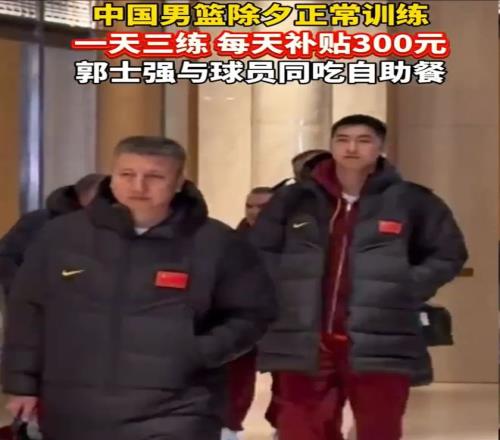 為了備戰第二窗口期的比賽,中國男籃在2月5日至2月23日開啟集訓,因為這期間剛好包含春節假期,國家隊的球員們也沒有放假。此前有媒體報道,中國男籃甚至除夕還在訓練,堅持一天三練,每天隻補貼300元,作為主教練的郭士強也跟球員同吃自助餐。